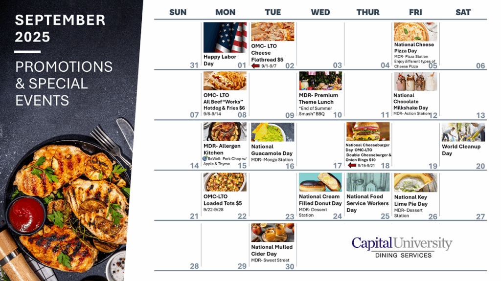 Stay in the know about all the great things happening in dining services. From limited time offers and contests to featured menu items, you’ll find everything you need to know about your food experience in this section. Plus, look for recipes, wellness tips and more from our expert chefs and dietitians.